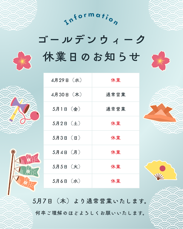 連休の間はネット通販もお休みになりますので、連休明けの対応になります。