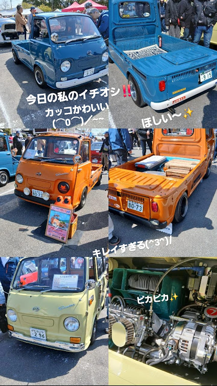 私が今回ほしい!と思ったのがスバルサンバートラック&バンタイプ!かわいすぎるしオシャレ!今の車にない魅力がいっぱい🤩バンタイプはエンジンが新品みたいにレストアされててピンピカピン✨ミニカーも消防タイプのジオラマはありました(笑)