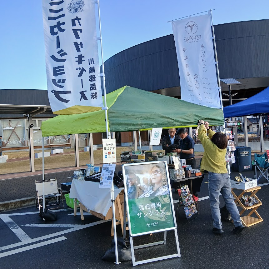 卸問屋さんからお誘いがあり今回いけるようになり、会社名を覚えてもらえるようにと勉強がてら出店!カワサキベースのミニカーと運転専用サングラスを販売させていただきました。