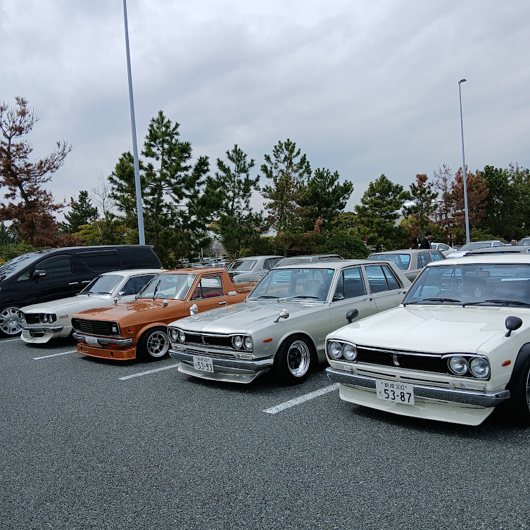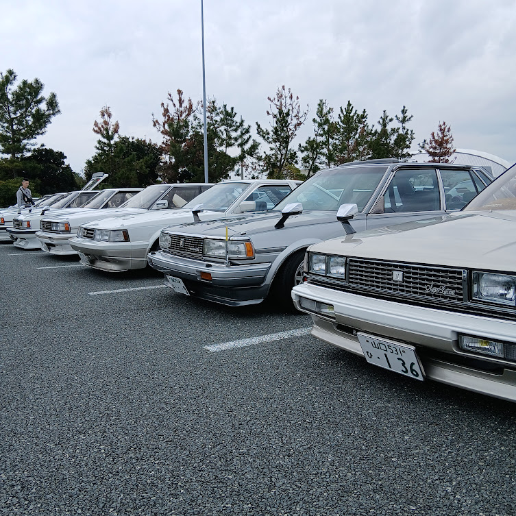 会場ではローダウン・ワイドホイール・当時仕様・フルレストア車両など、こだわりのカスタムカーが多数展示され、オーナー同士の交流や来場者との会話も盛り上がっていました。昭和の名車からネオクラシックカーまで幅広いジャンルの車両が並び、写真撮影を楽しむ来場者の姿も多く見られました。また、旧車だけでなくスポーツカーやカスタムカー、希少車なども参加しており、見応えのあるイベントとなっていました。
