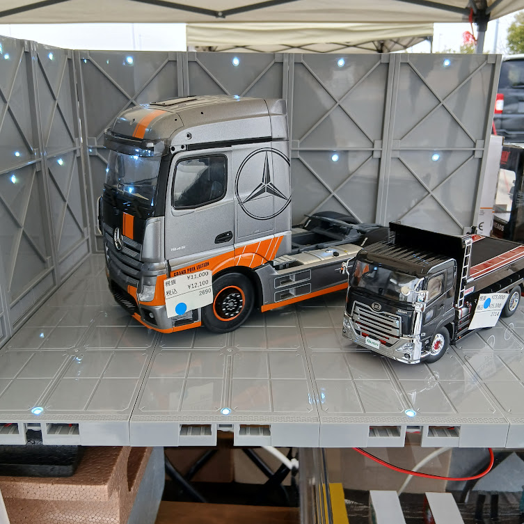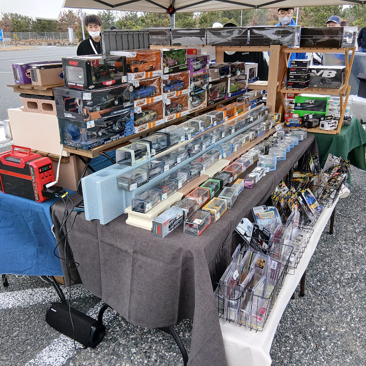 宮崎県延岡市のカワサキベースも関連ブースとして出店し、ミニカー・旧車ミニカー・トラック模型・限定モデルなどを展示販売しました。実車イベントでは同じ車種のミニカーを探される方も多く、「この車のミニカーありますか?」という声も多くいただき、ミニカーショップとして非常に充実した出店となりました。1/64スケールミニカーから大型トラック模型まで幅広く取り揃え、多くのお客様にご覧いただきました。